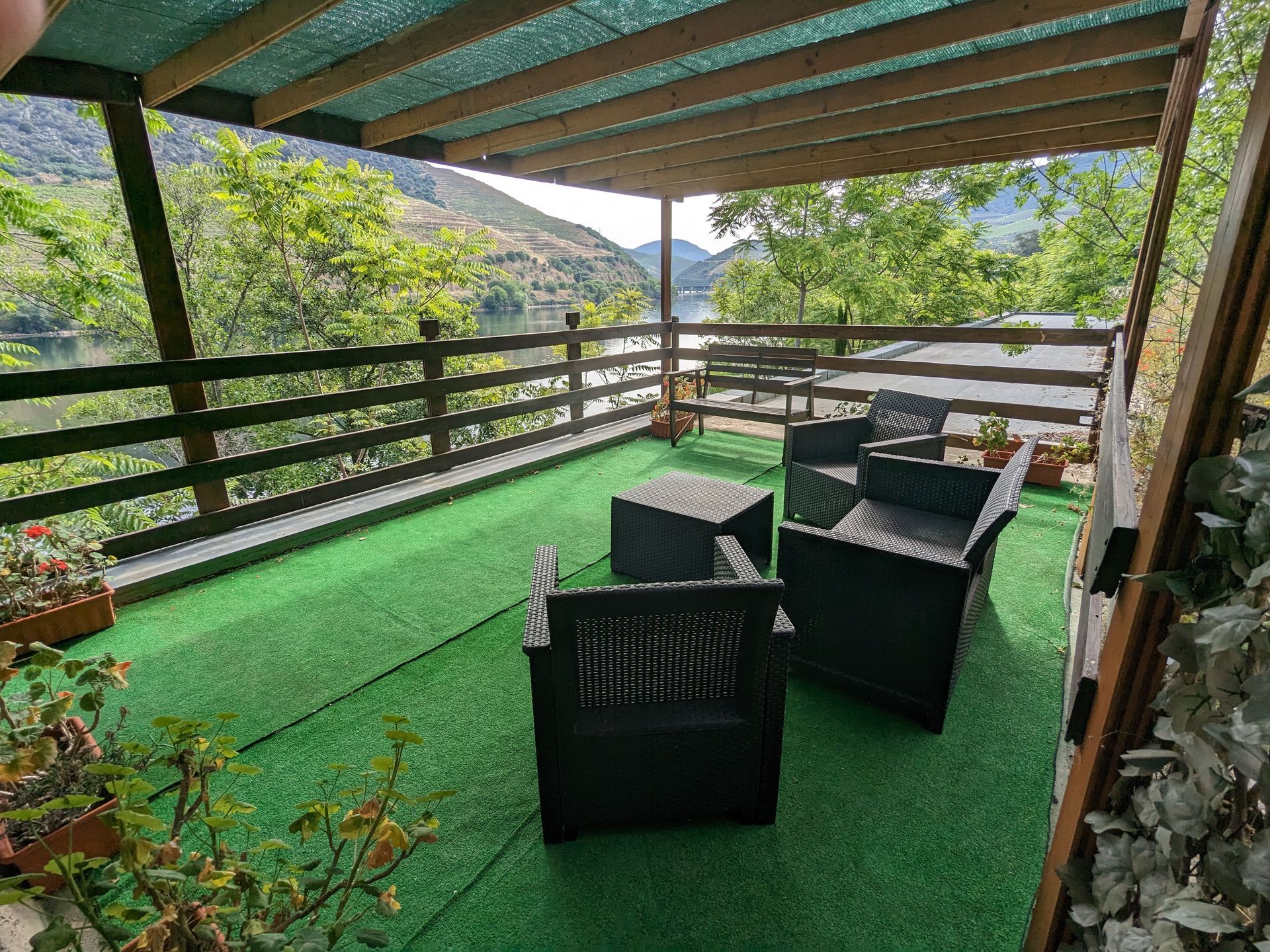 Chalé T2 em Madeira com varanda sobre o Douro:Lotação: 4 adultos (+ 2 camas extra)Um quarto com cama de casal 1.40Um quarto ext. com 2 camas 1.401 WC completo com ducheSala com kitchenette, mesa de refeições e sofá camaKitchenette totalmente equipada com fogão, micro-ondas, frigorifico, maq. de café, torradeira, fervedor etc.Aquecimento e Ar condicionadoGrande terraço com mobiliário exterior