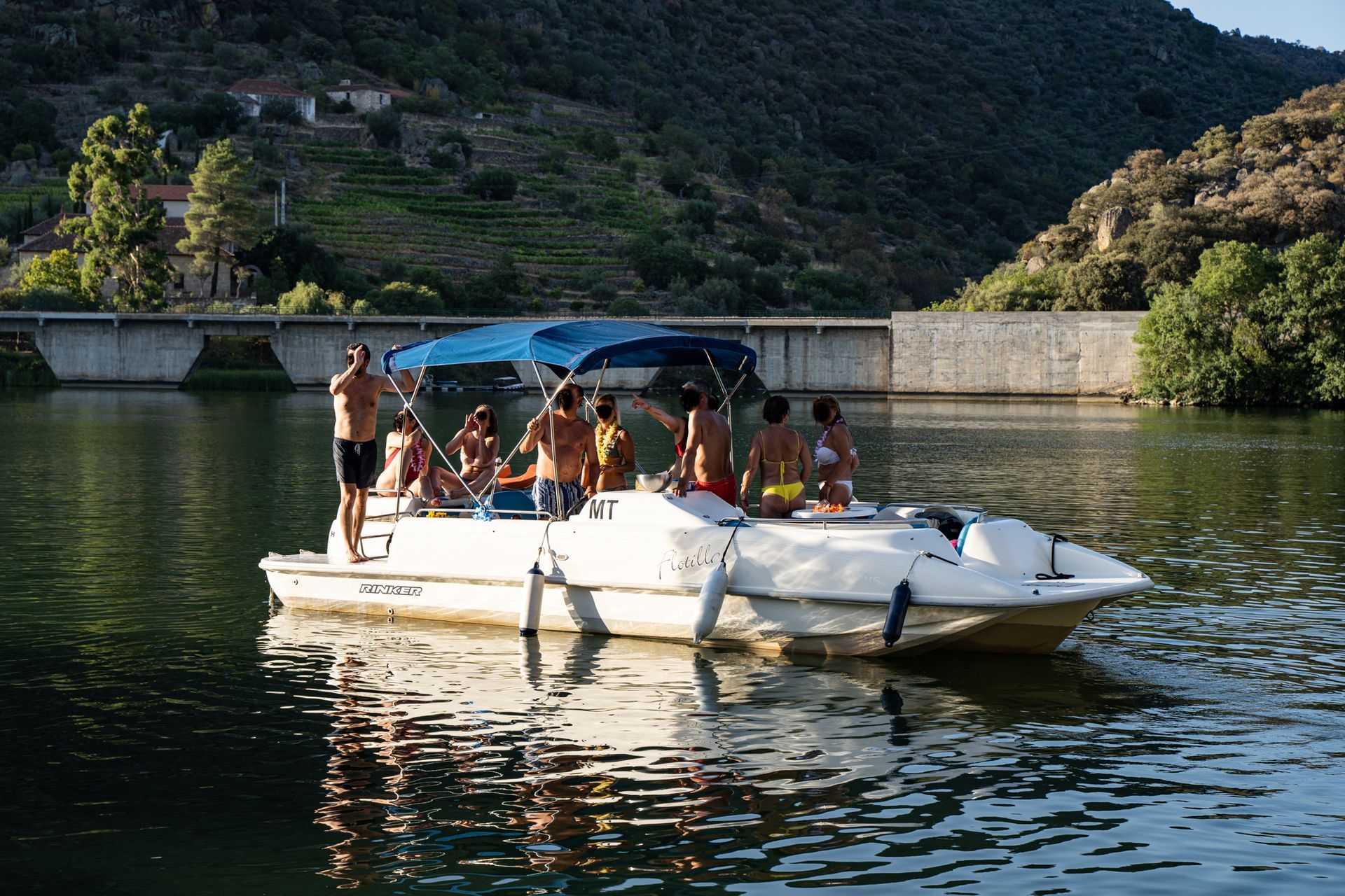 Ideal para grupos, festas, convívios e provas de vinhos : 10 Passageiros (+Tripulantes), Sombra em volta de grande parte do barco, 4 Sofás, 2 mesas, geleira (a pedido), plataforma banho e escada.